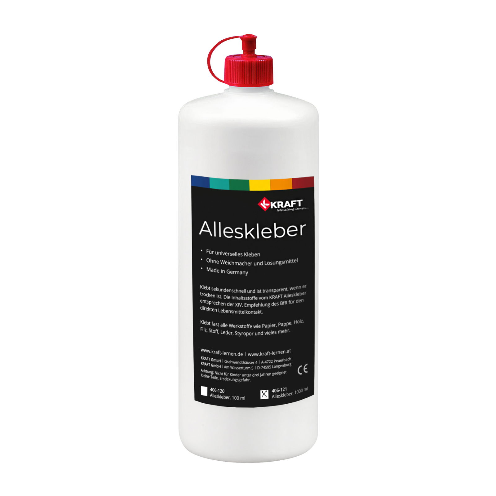 Werkstoffe wie Papier, Pappe, Holz, Filz, Leder oder Styropor können problemlos geklebt werden. Durch die Spritzdüse ermöglicht unser Alleskleber das punktgenaue Kleben genauso gut wie das großflächige Basteln.