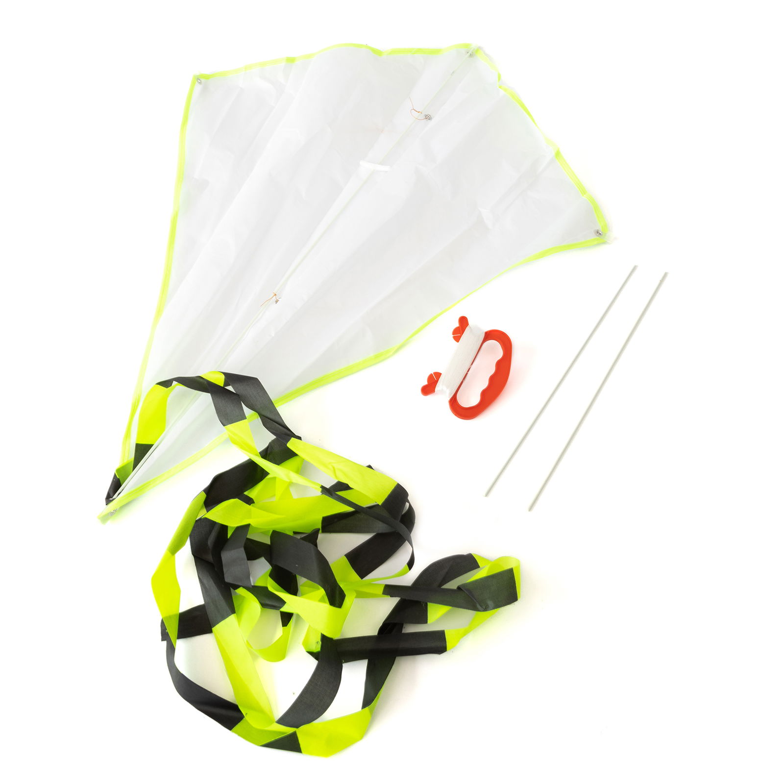 - Bruchsichere Kunststoffleisten, verstärkte Ösen, dehnungsarme 27 m lange Drachenschnur mit D Formwickler