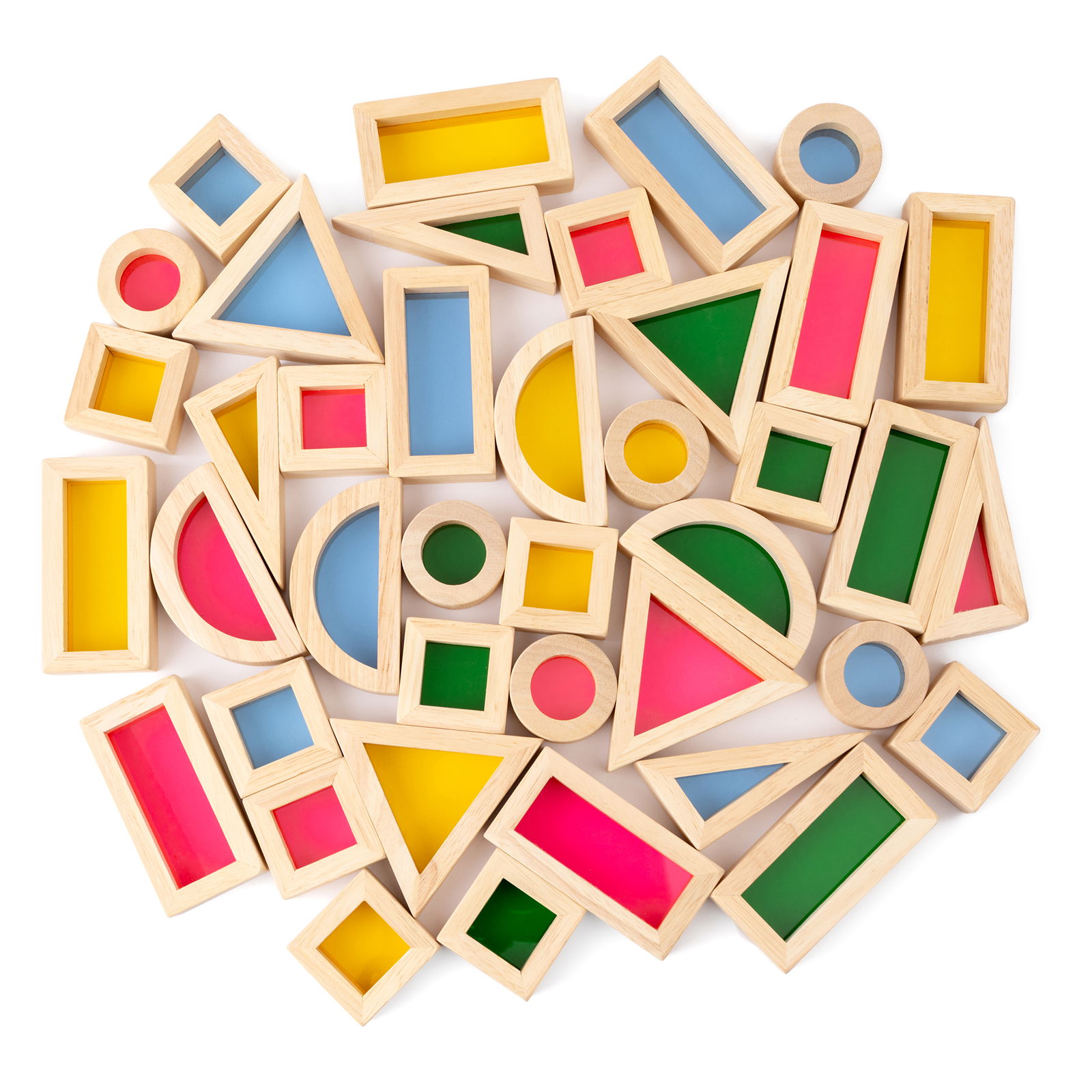 Unsere bezaubernden Fensterbausteine laden Kinder dazu ein, die Welt in kunterbunten Farben zu sehen. So dient jede der geometrischen Formen als Tor zu einer kleinen Farbenreise. "Wie sieht der blaue Teppich aus, wenn ich ihn durch das gelbe Sichtfenster des Bausteins anschaue?", "Wie wohl meine Freunde aussehen, wenn ich sie durch das Grün der neuen Lieblingsbausteine beobachte?" Gedankengänge, die kleine und große Kinder zum kreativen Spiel einladen. So schulst Du spielerisch die Farbenlehre und bietest selbst Krippen- & Kindergartenkinder die Chance, die Welt der Farben kennenzulernen, die bspw. weniger gerne Malen aber dafür Bauen.