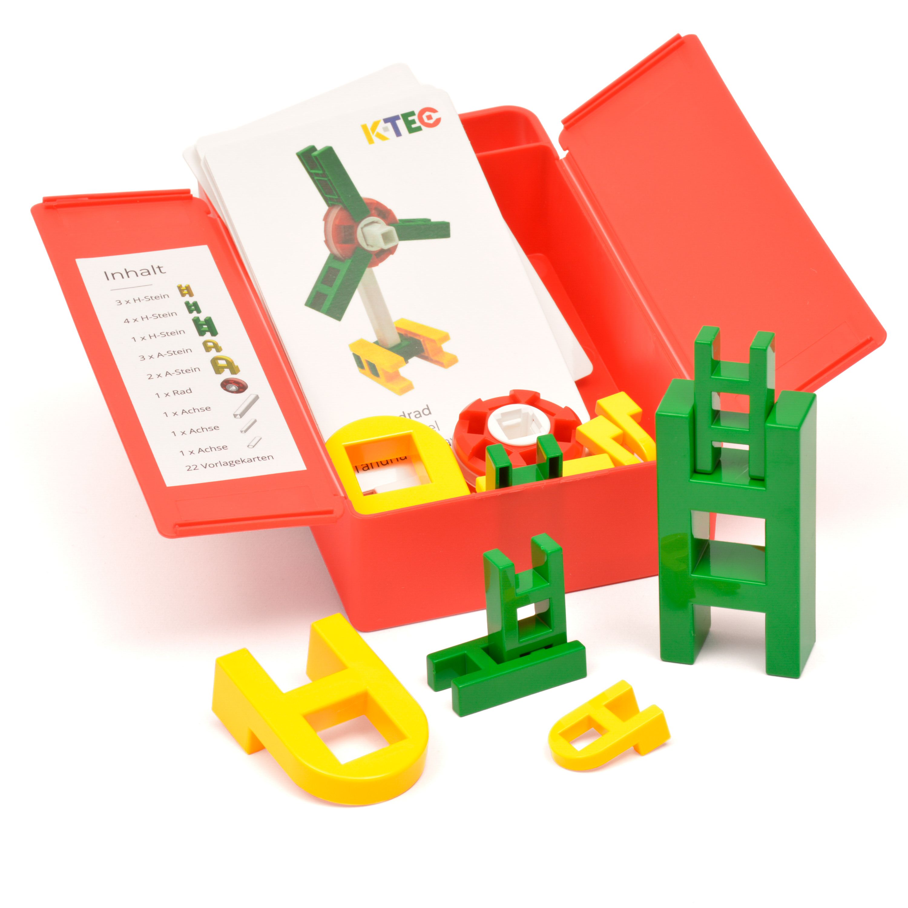 Transportbox, 17 Bauteile, 22 Vorlagekarten