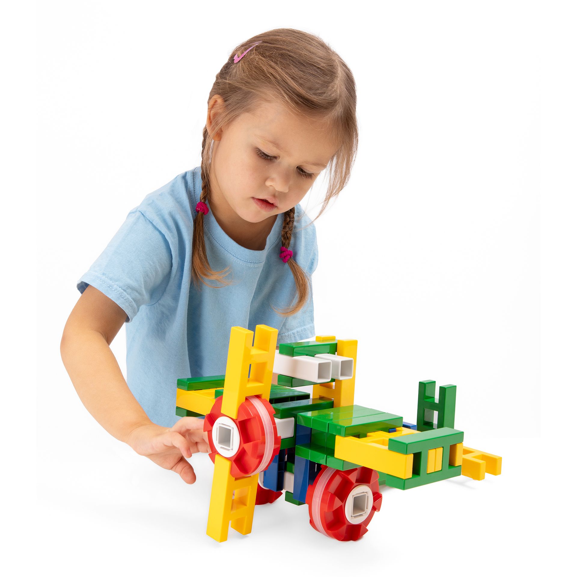Kreativität und Vorstellungskraft sind zentrale Bestandteile kindlicher Entwicklung. K-TEC regt zum Ausprobieren an und motiviert Kinder dazu, ihre Vorstellungskraft zu nutzen und durch fantasievolle Ideen weiterzuentwickeln. Durch die vielseitigen Verbindungsmöglichkeiten gibt es viele Lösungswege, die das Kind während der gelingenden Umsetzung kreativer Ideen entdeckt.