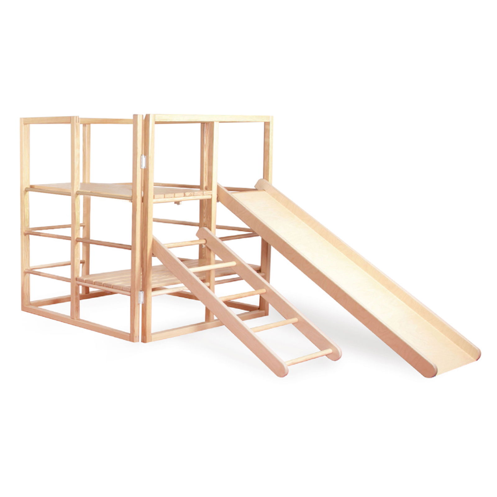 Kletterset bestehend aus Kletterhaus mit 2 Einlegeböden, Leiter 120 cm und Rutsche 180 cm