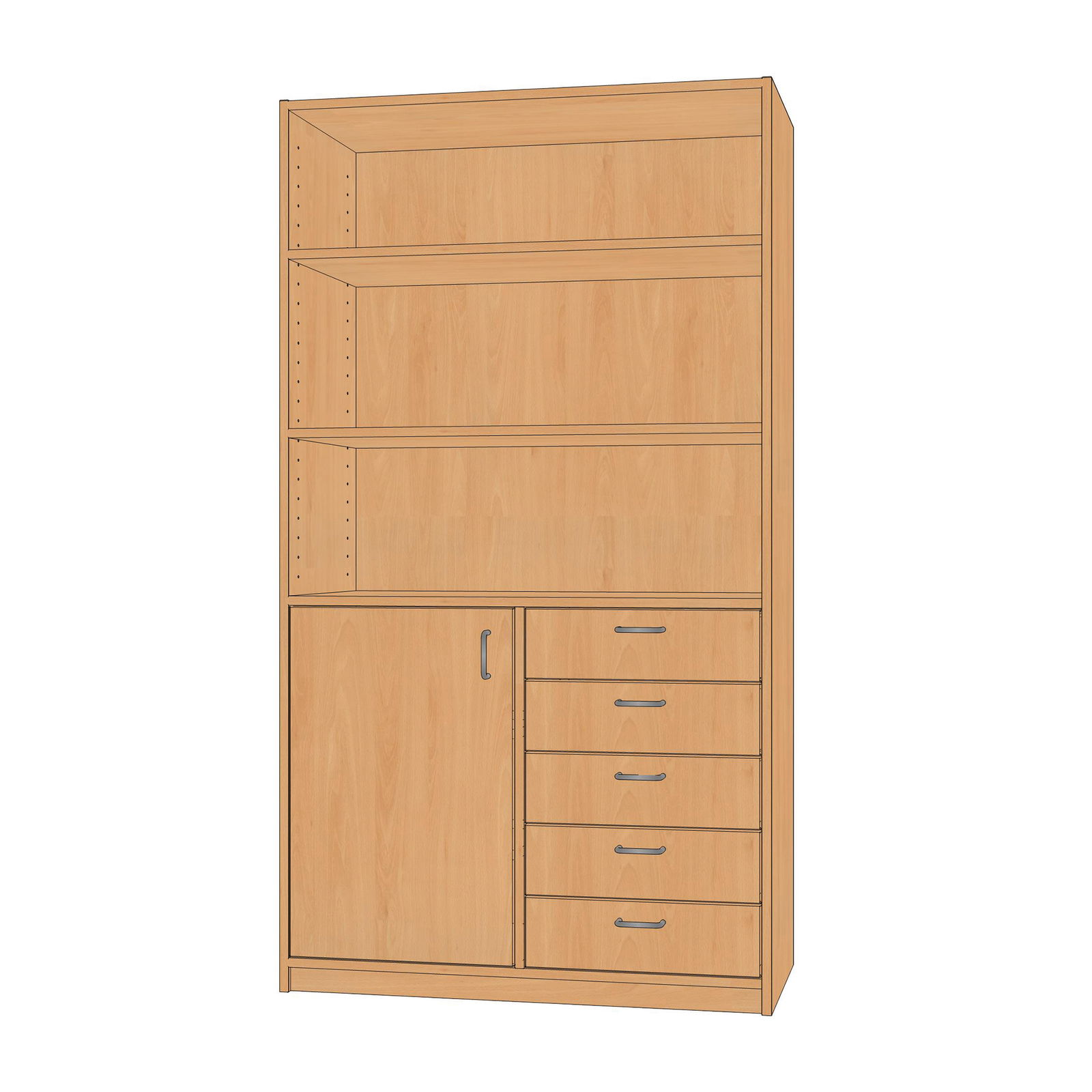 Kombischrank, 100x180x40cm, Türe & 5 Schubladen