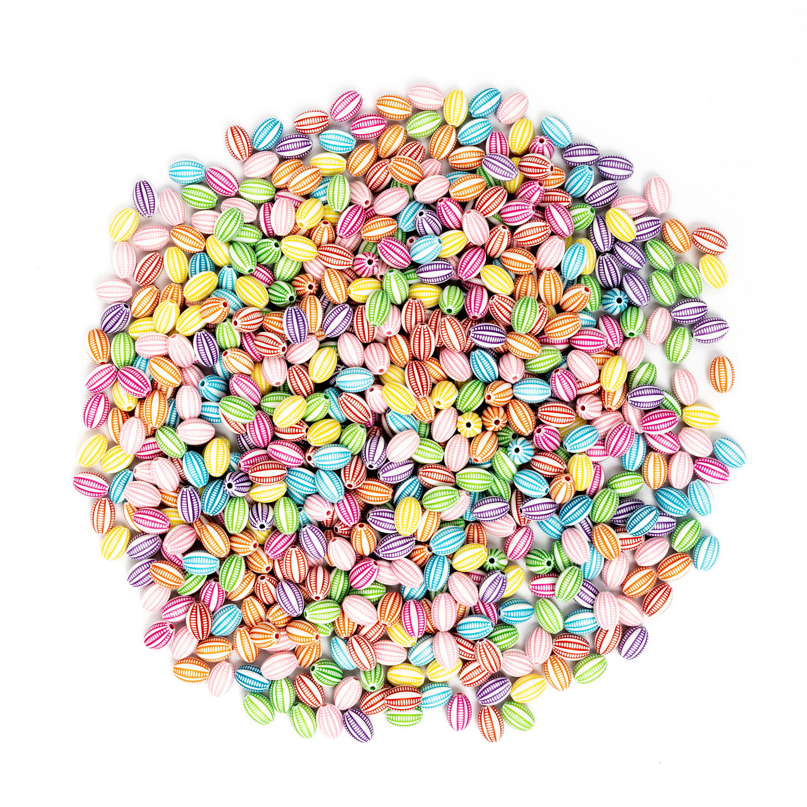 Mit unseren bunten Fädelperlen entdecken Sie das perfekte Bastelzubehör für kreative Projekte. Das Set enthält 1.300 ovale 1 x 1,4 cm große Perlen, die Ihrem handgemachten Schmuck, Kunstwerken oder DIY-Projekten eine besondere Note verleihen - und das auf Duer. denn unsere robusten Perlen sind aus stabilem Kunststoff gefertigt, der ganz schön was abhaben kann ohne dass man es den schönen Perlen ansieht. Die frischen Farben sind von weißen Rillen geziert und sorgen damit für besonders detailierte, zart wirkende Highlights.
