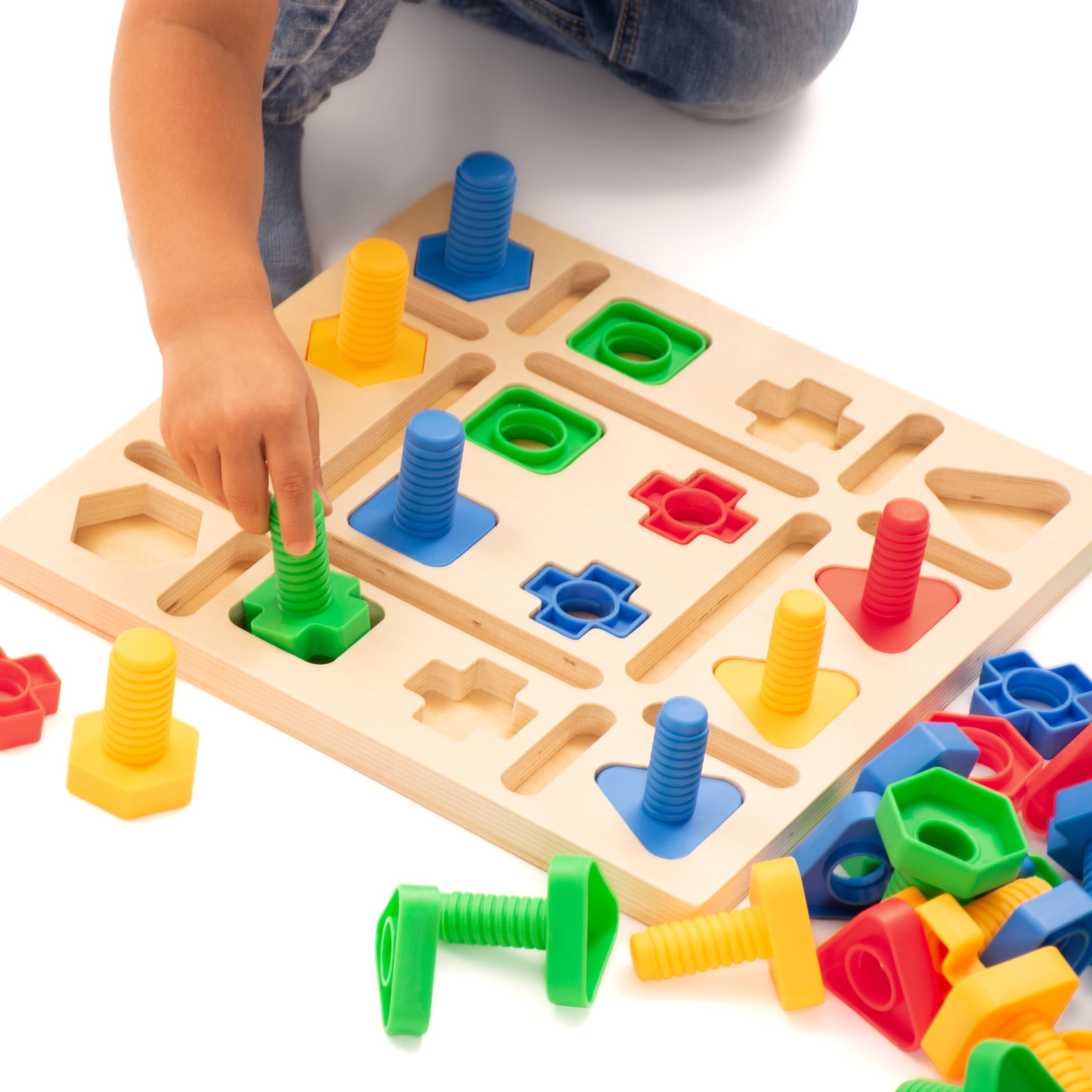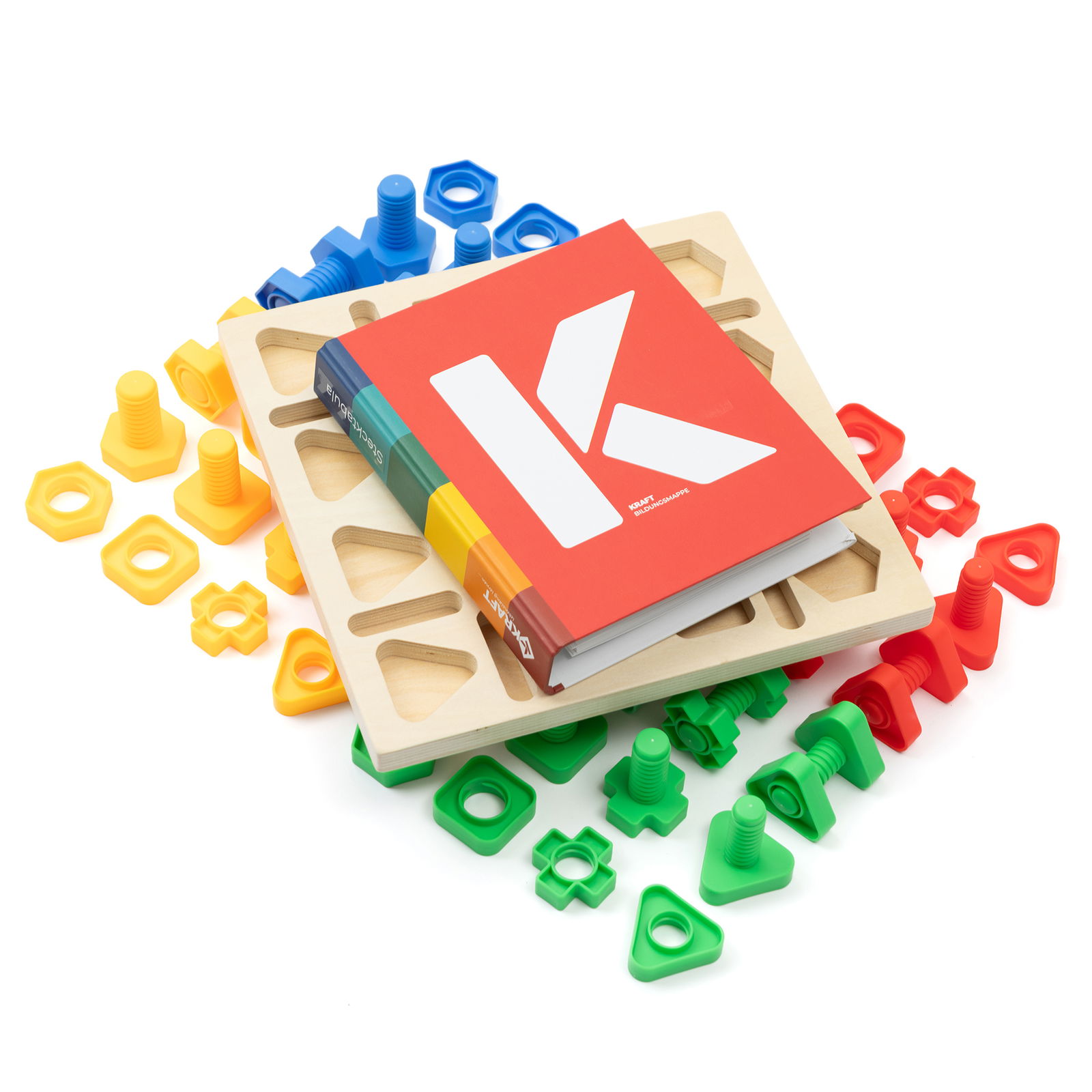 O Stecktabula é um jogo de motricidade que prepara as crianças de forma lúdica para aprender a escrever: ao pegar, posicionar e parafusar, elas treinam a destreza dos dedos, o controle da força e a coordenação olho-mão – habilidades essenciais que contribuem para uma boa pegada do lápis.