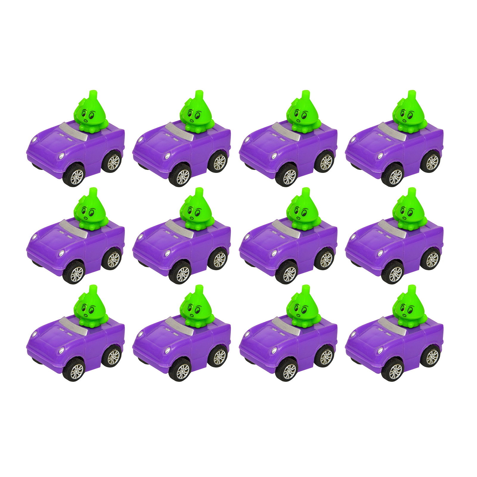 Carro de brincar com carroçaria de plástico e mecanismo de puxar com bonequinho magnético