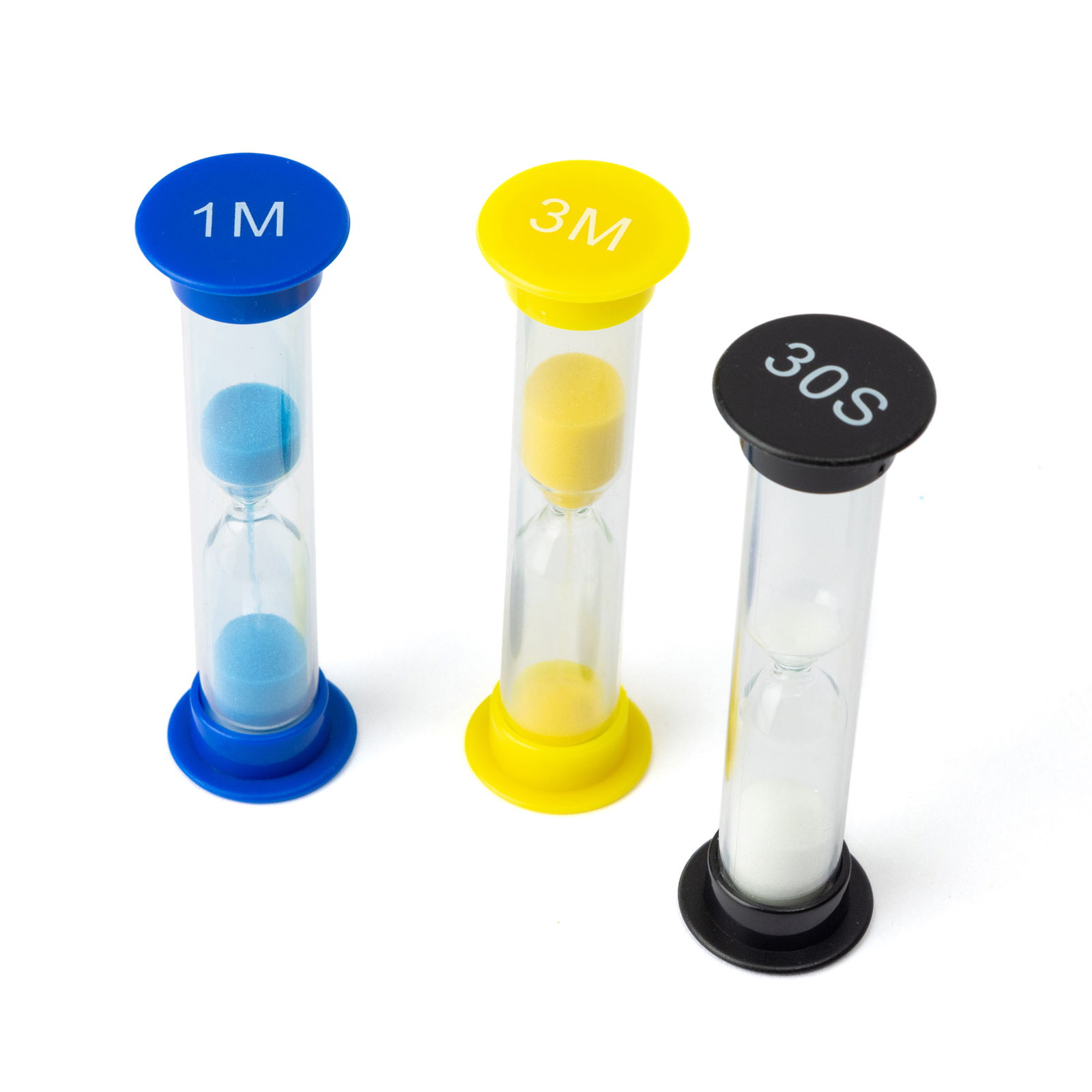 3 Mini Sanduhren mit den Laufzeiten: 30 Sekunden, 1 und 3 Minuten
