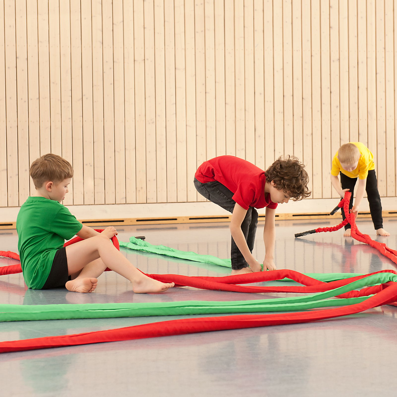 K-Ropes so vsestranski telovadni pripomoček, ki otroke spodbuja k razvijanju lastnih gibalnih idej. Tudi vodene ure telovadbe se lahko z enostavno uporabo K-Ropes hitro spremenijo v raznolike in razburljive gibalne enote. Ne glede na to, ali notri ali na prostem – začni z različnimi možnostmi spodbujanja, kot so:- Krepitev z mahanjem ali vlečenjem