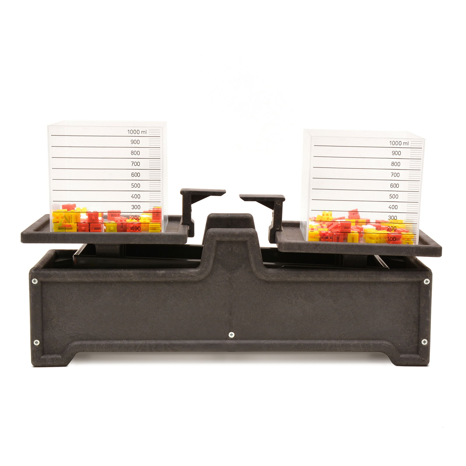 Mit unserer Tafelwaage lernen Kinder auf anschauliche Art und Weise mathematische Beziehungen zwischen verschiedenen Gegenständen herzustellen. Durch unsere Tafelwaage können die Kids die Relationen „schwerer“, „leichter“ oder „gleich“ herausfinden und ausdrücken lernen. So wird das logische Denken gefördert und eine Basis für spätere Vergleiche gelegt.