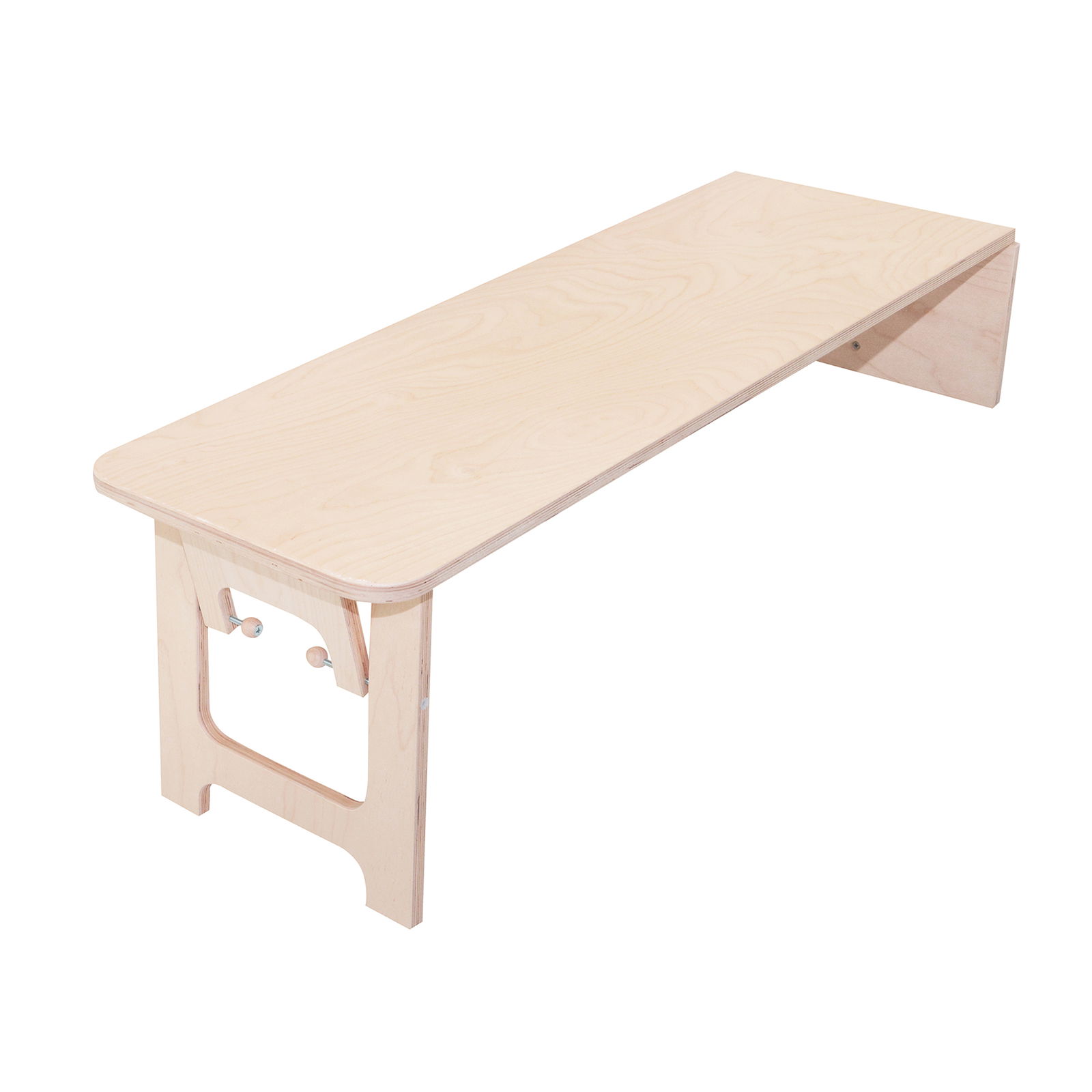 Unsere Wandklappbank ist eine multifunktionale und platzsparende Lösung für kleine Räumlichkeiten in Kitas oder Kindergärten. Wird die Wandklappbank als Sitzmöglichkeit zum Essen, in der Kreativecke oder für lustige Brettspiele benötigt, so können Sie sie einfach runter klappen. Sobald die Wandklappbank die Kinder beim Spielen oder Toben aber stört, klappen Sie sie ganz leicht wieder hoch.