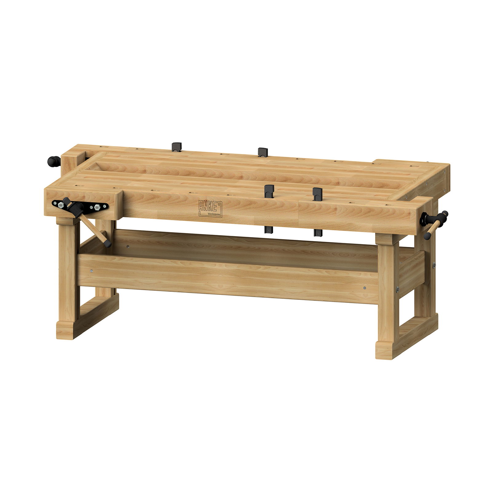 - Für zwei Arbeitsplätze mit einem Plattenmaß von 140 x 80 x 10 cm, Buche-Massiv-Platte: längsseits riegelartig zahnverleimt & gewachste Oberfläche