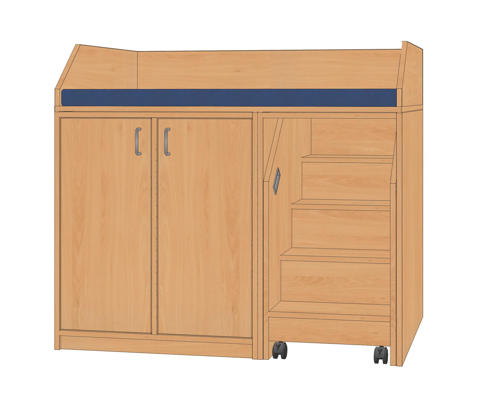 Wickelanlage, 125x110x75cm, Treppe re., Doppeltüren